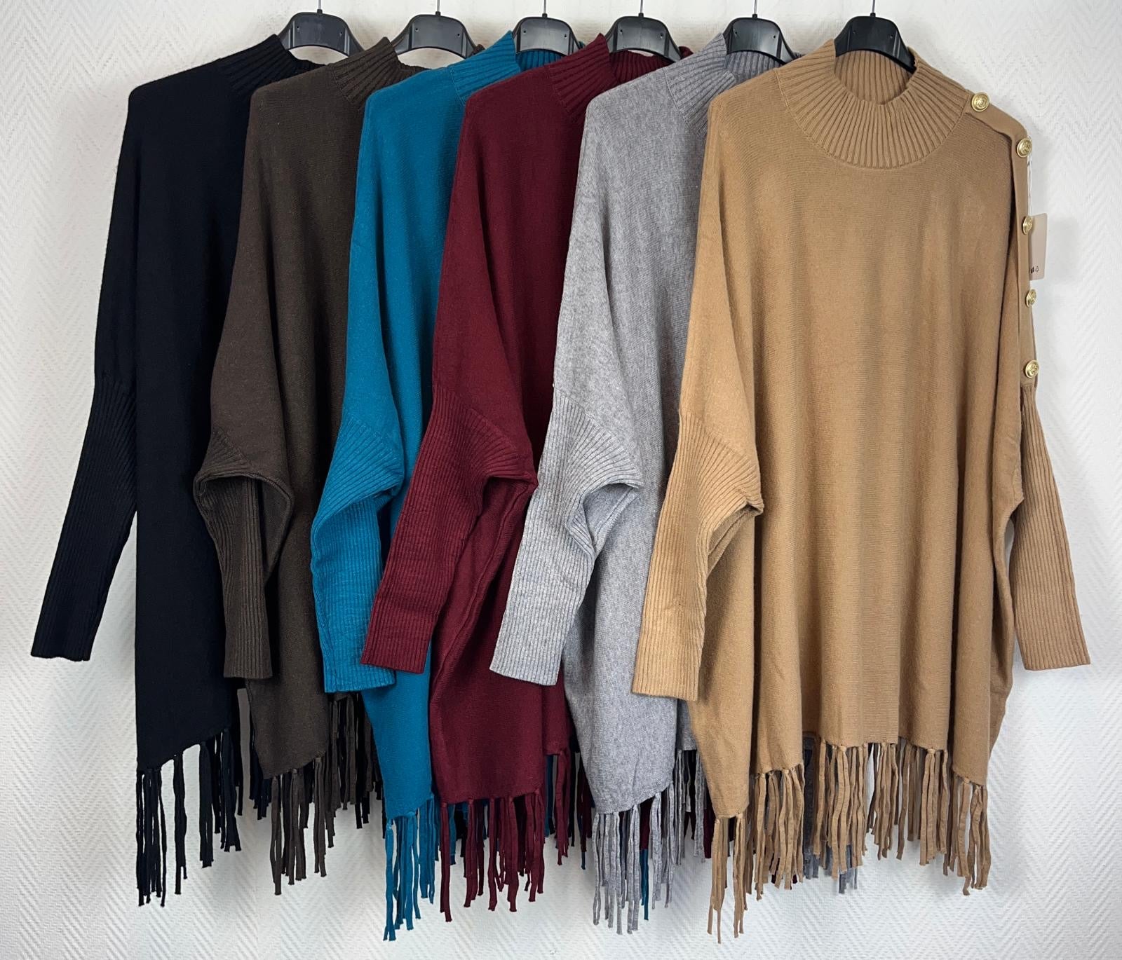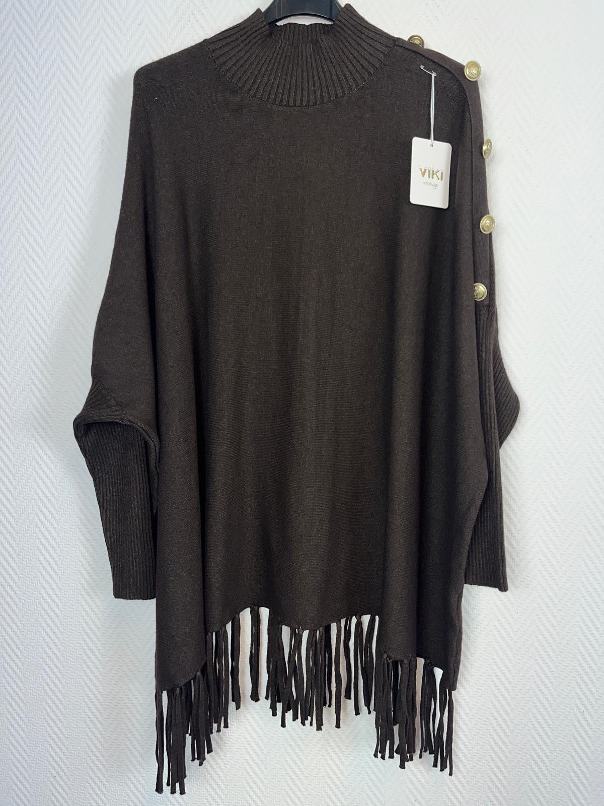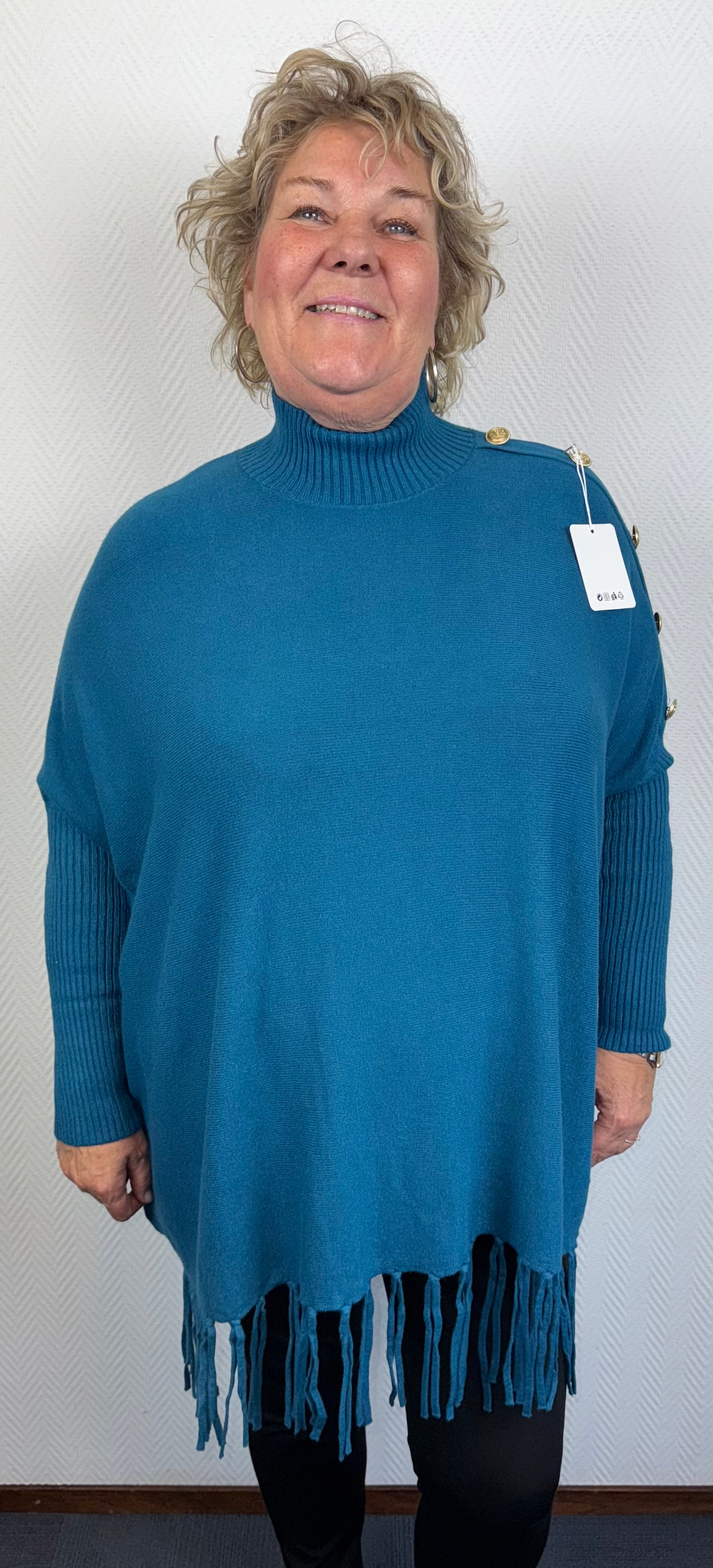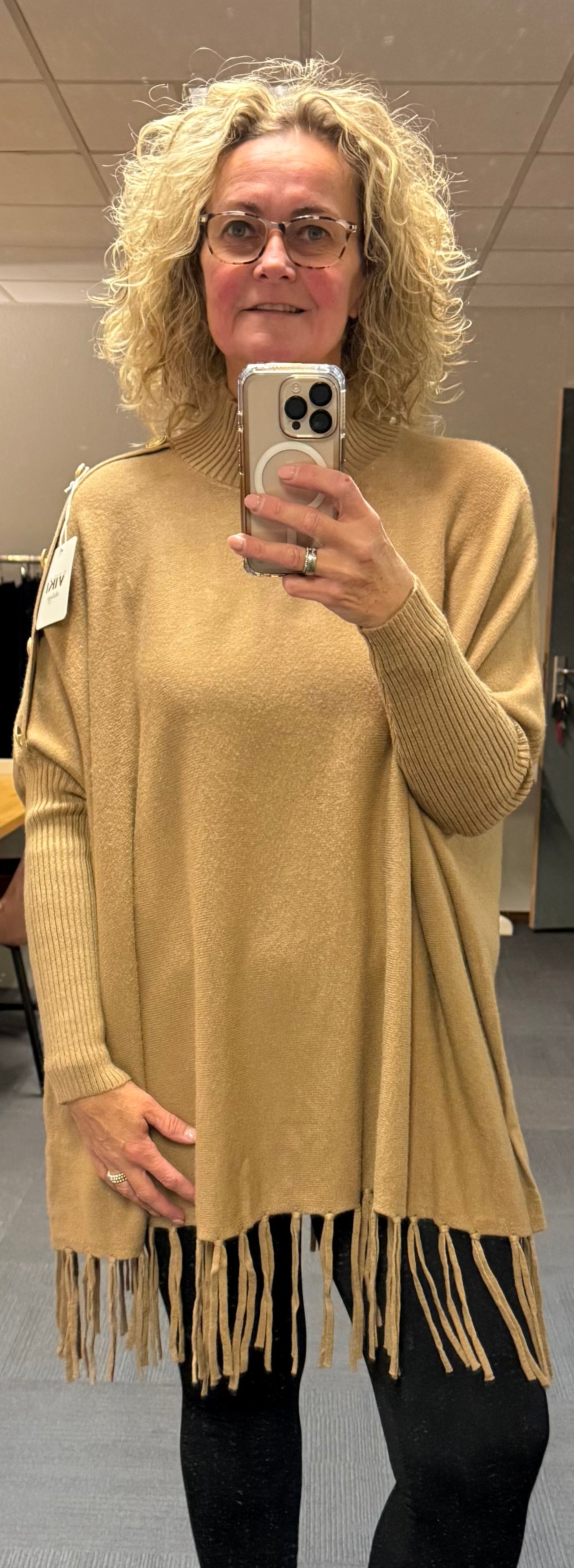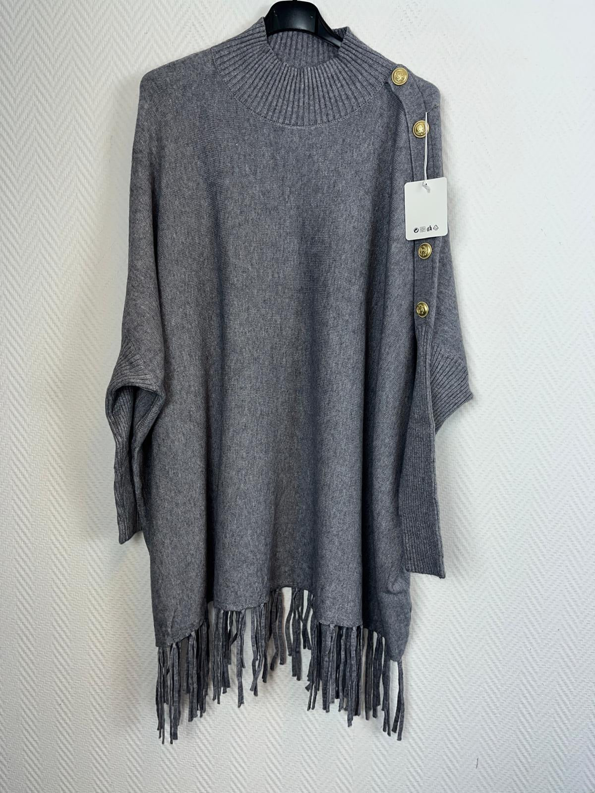 Leuke knopen op de linker schouder en dan die franjes onderop 👌