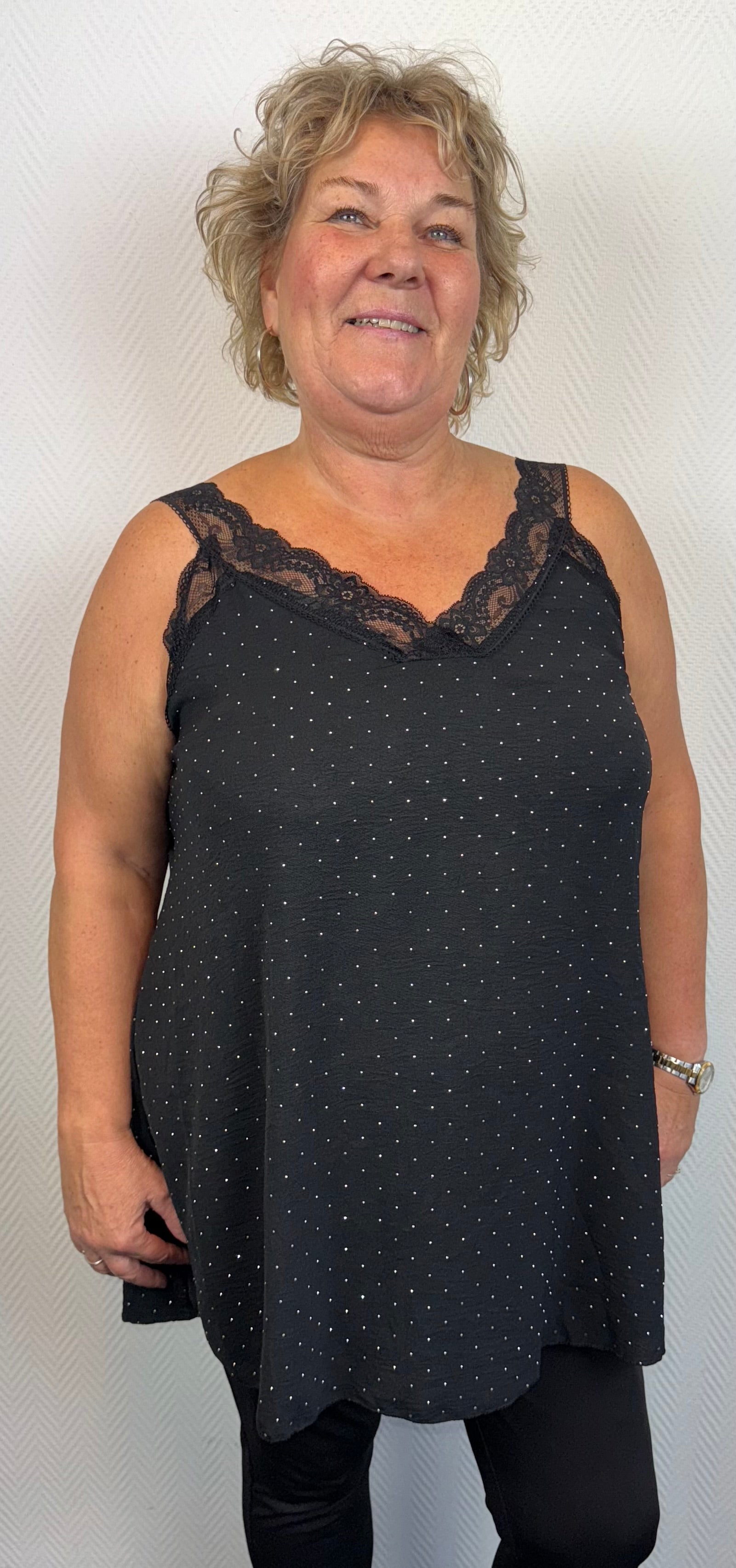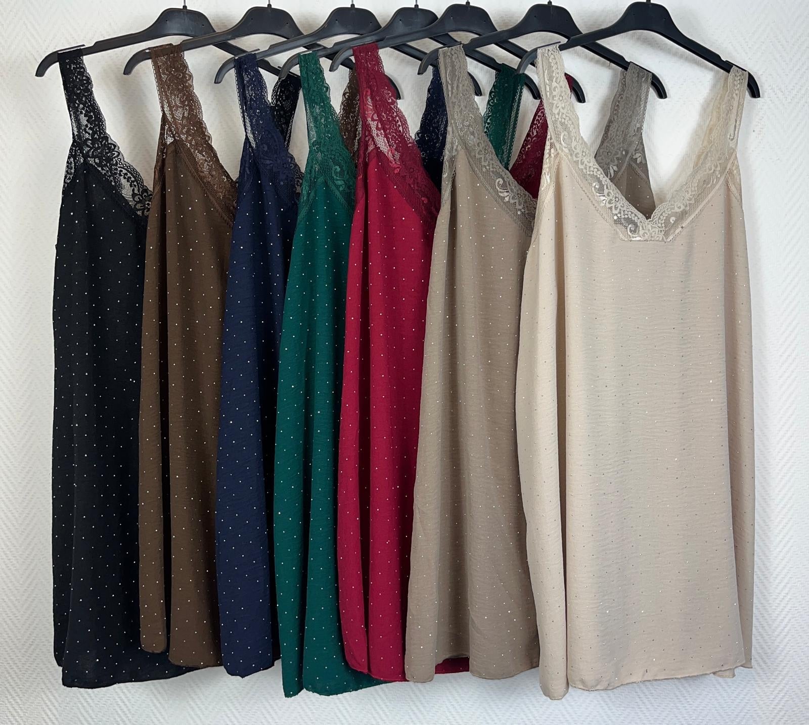 Super hemdjes met kant aan de randjes en allemaal kleine studjes die je het hele jaar door kunt dragen.
