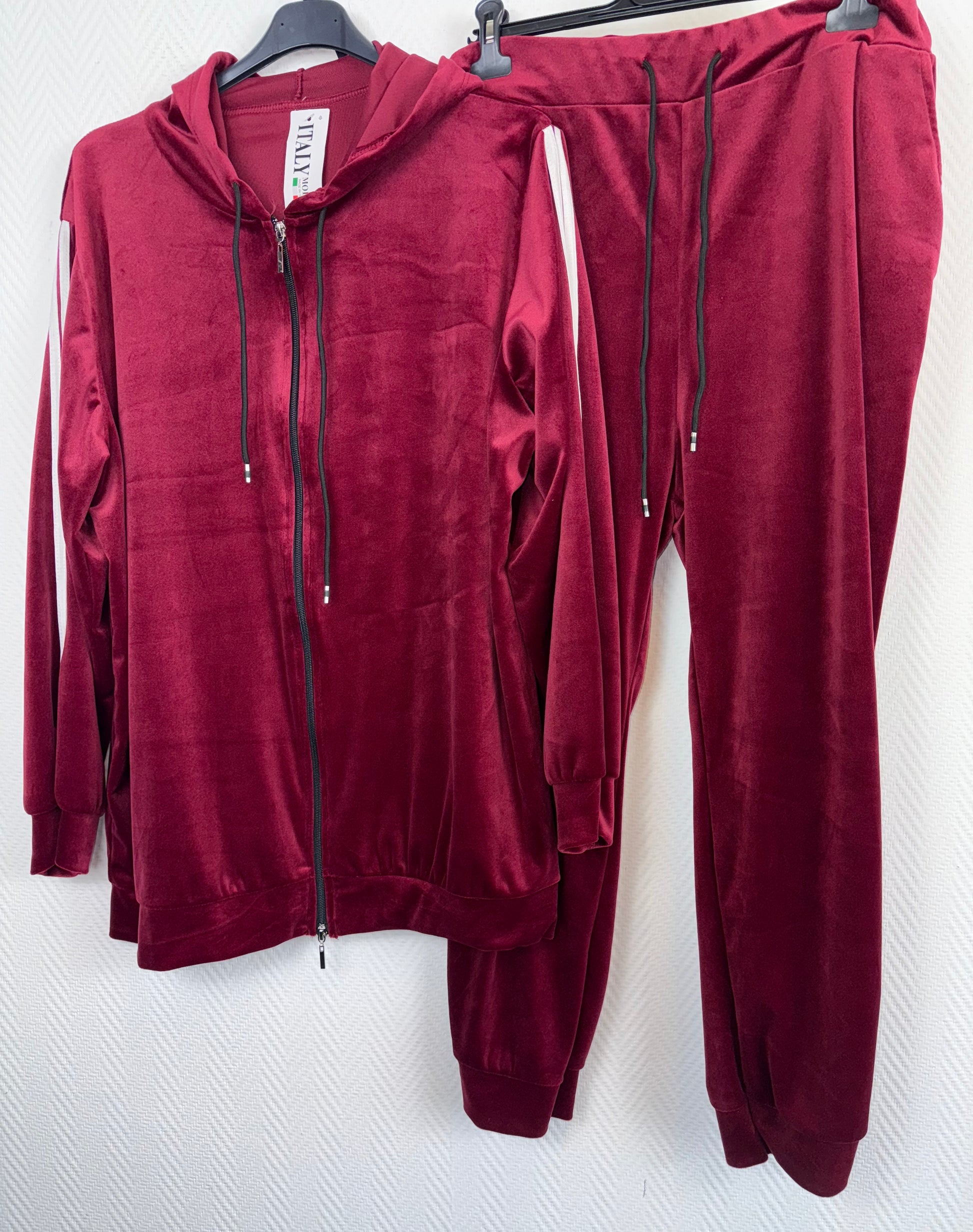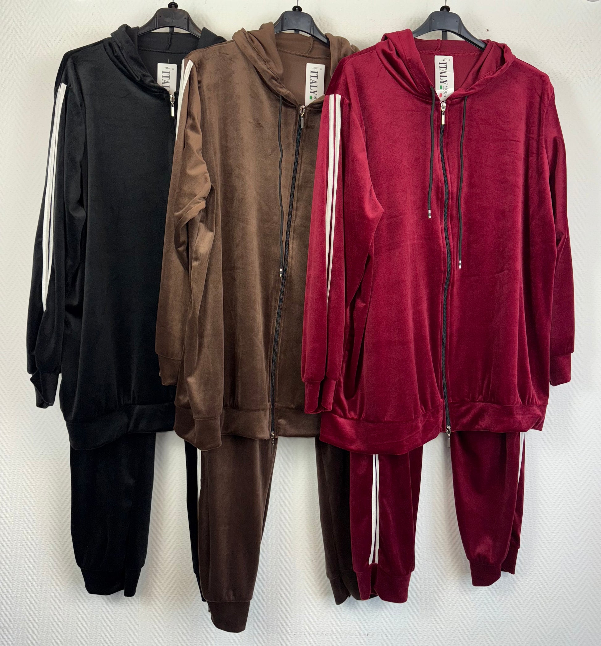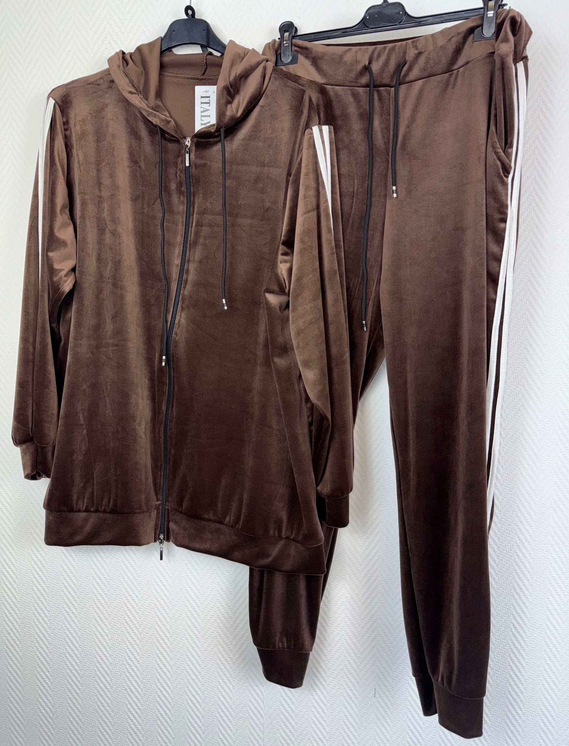 Heerlijk pak in dat fijne velours stof en met leuke witte strepen aan de zijkanten.