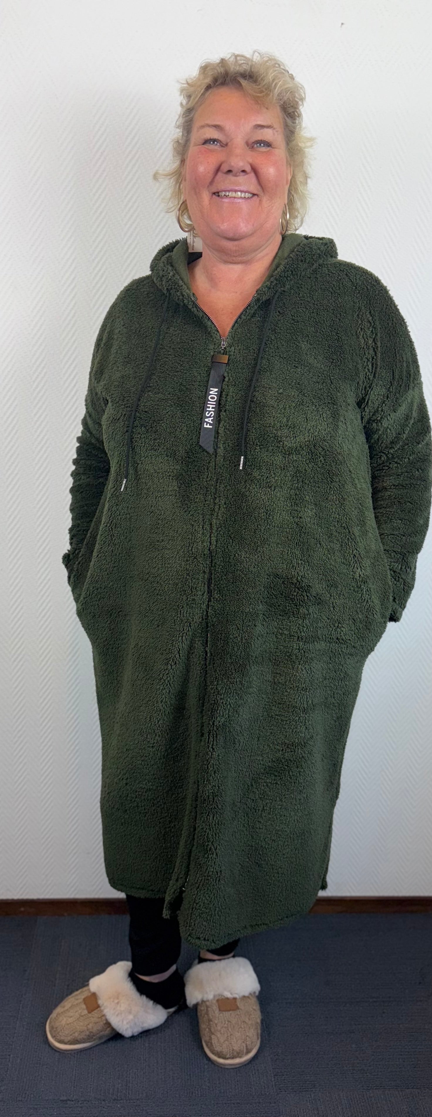 Heerlijk zachte teddystof, heeft een capuchon, zakken en een rits dus echt ideaal!