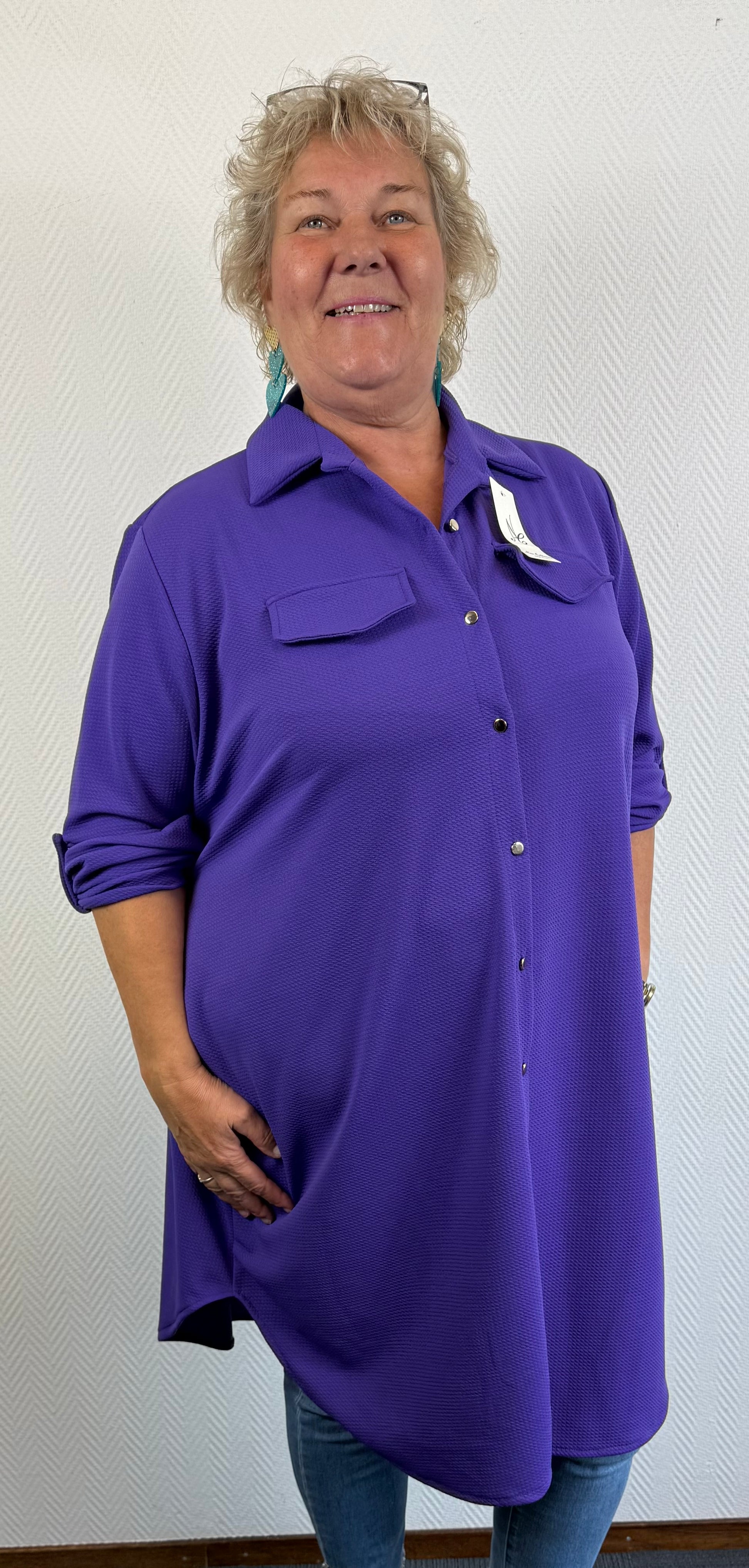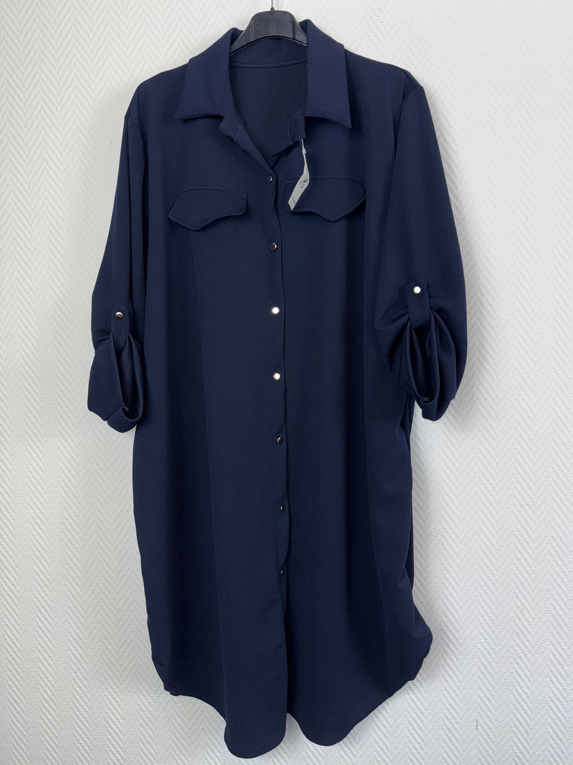 Heeft kleine goud kleurige knoopjes en die handige ophaal mouwen.