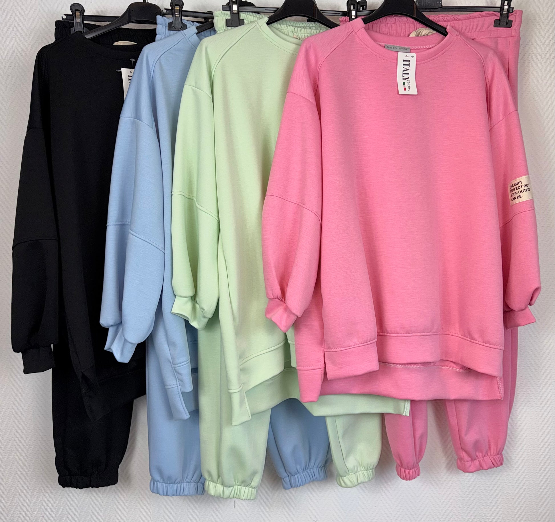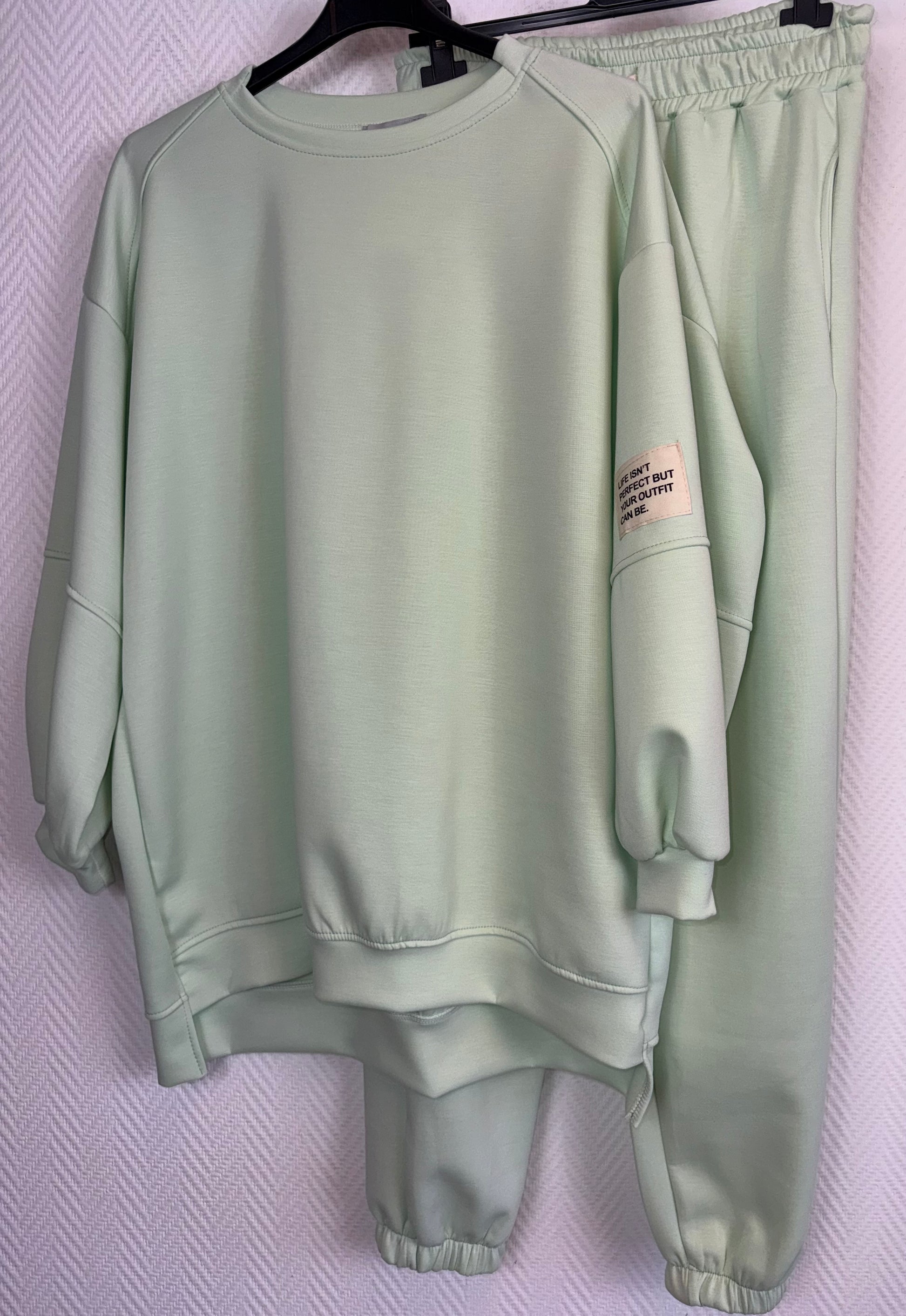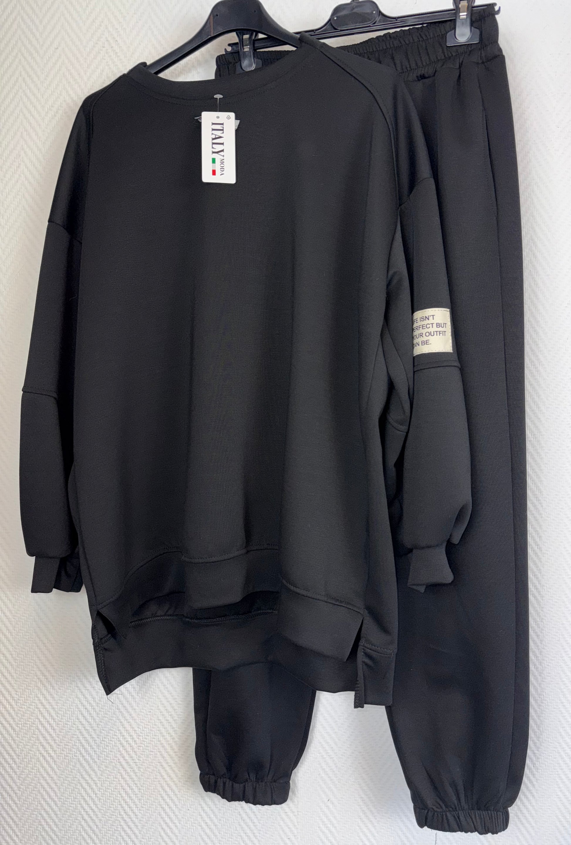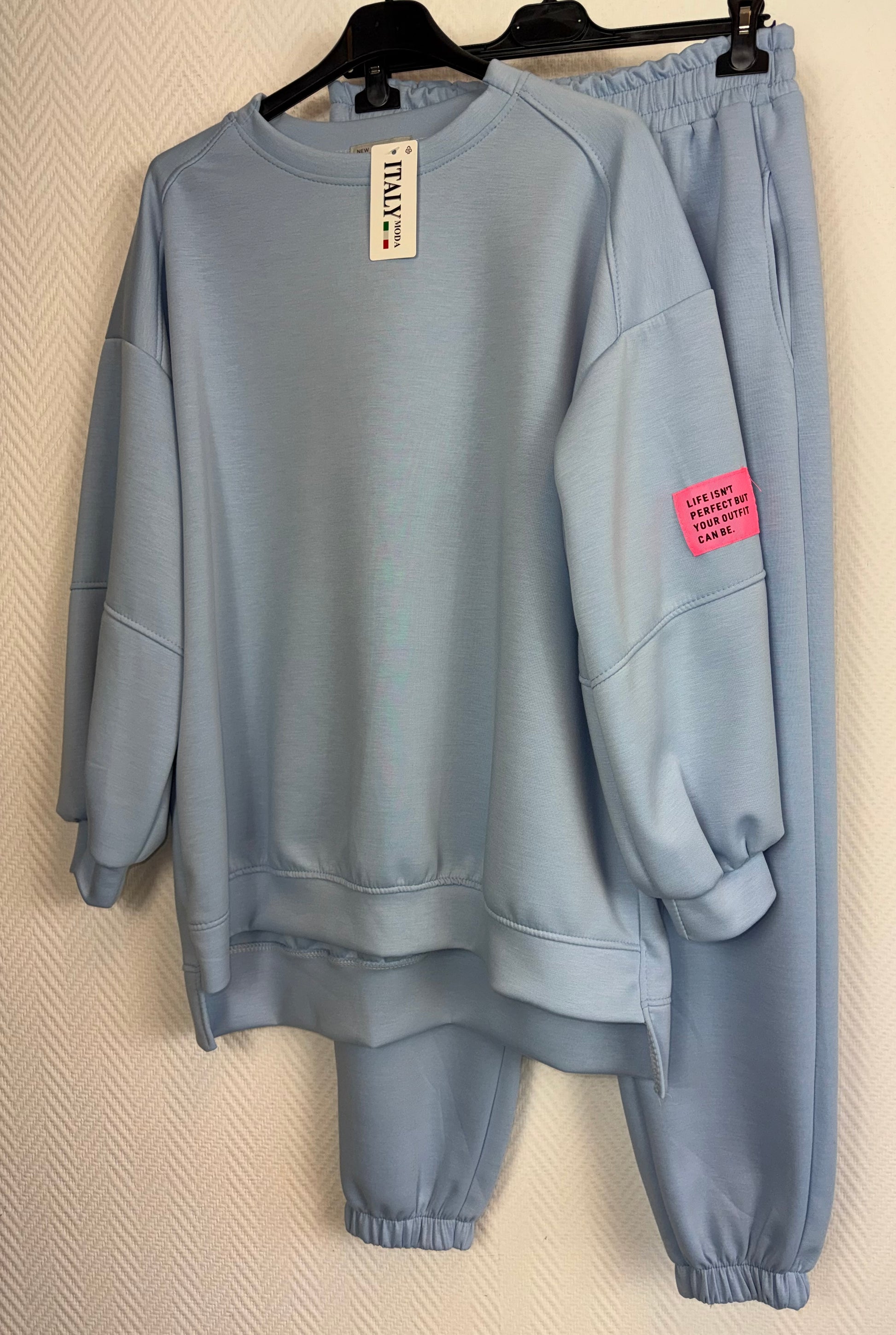 Heerlijk zacht comfy pak met die leuke emblemen op de mouwen.