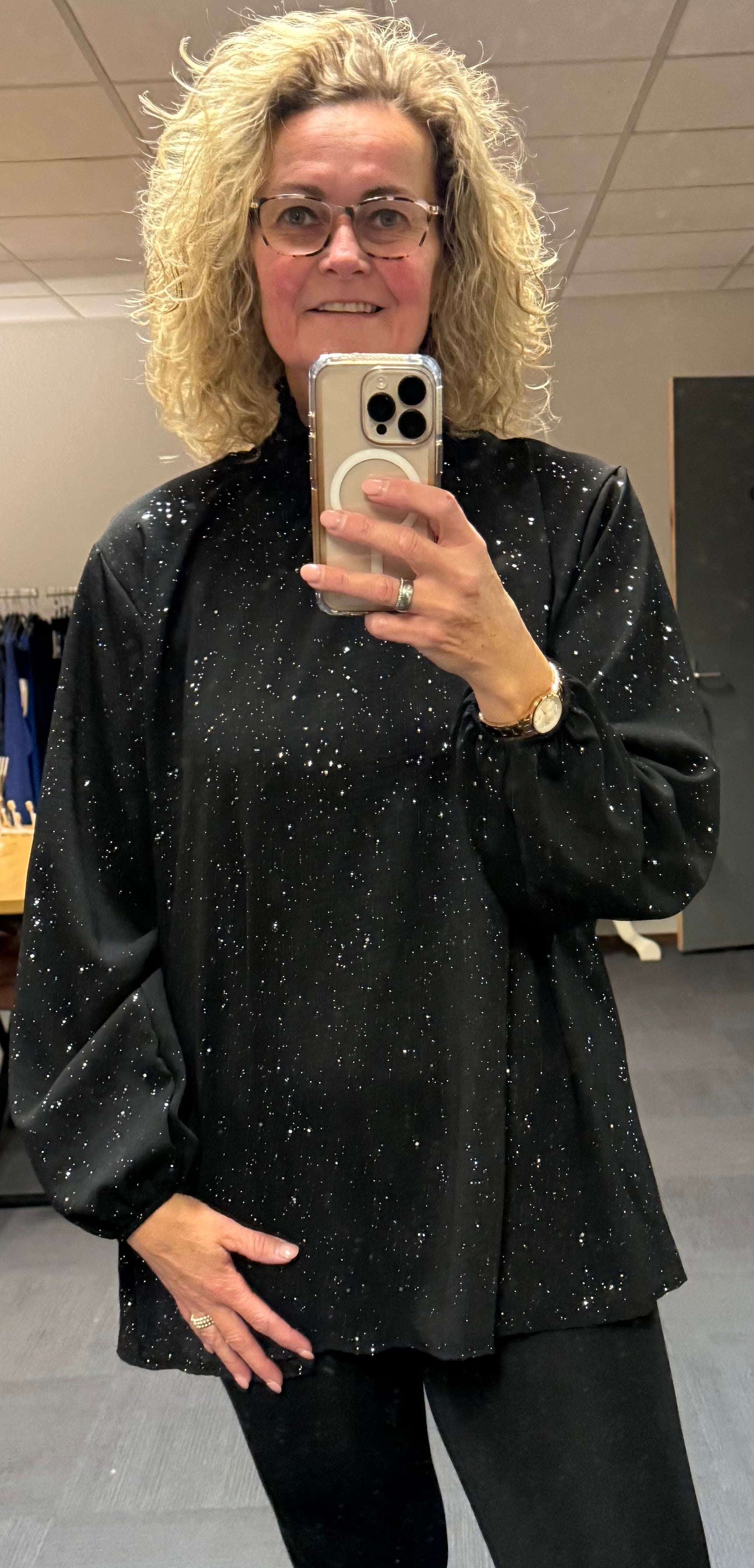 Wat een leuk shirtje met turtle halsje en allemaal bling bling 🤩