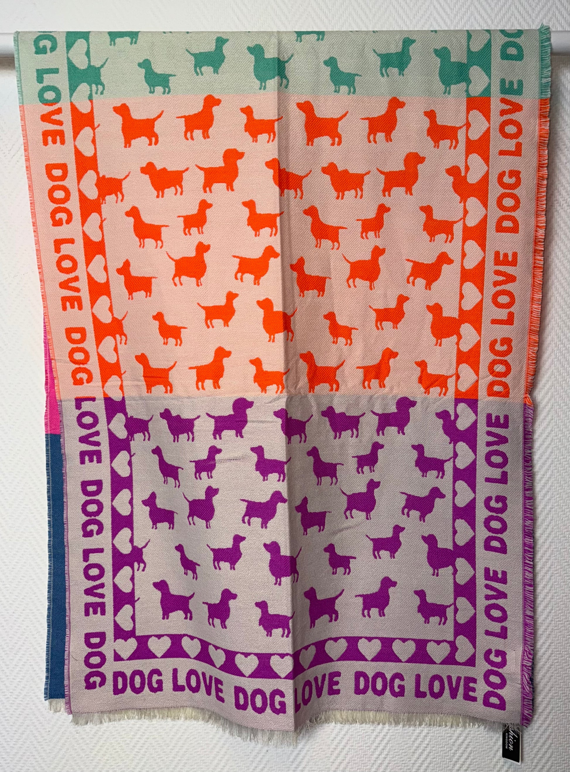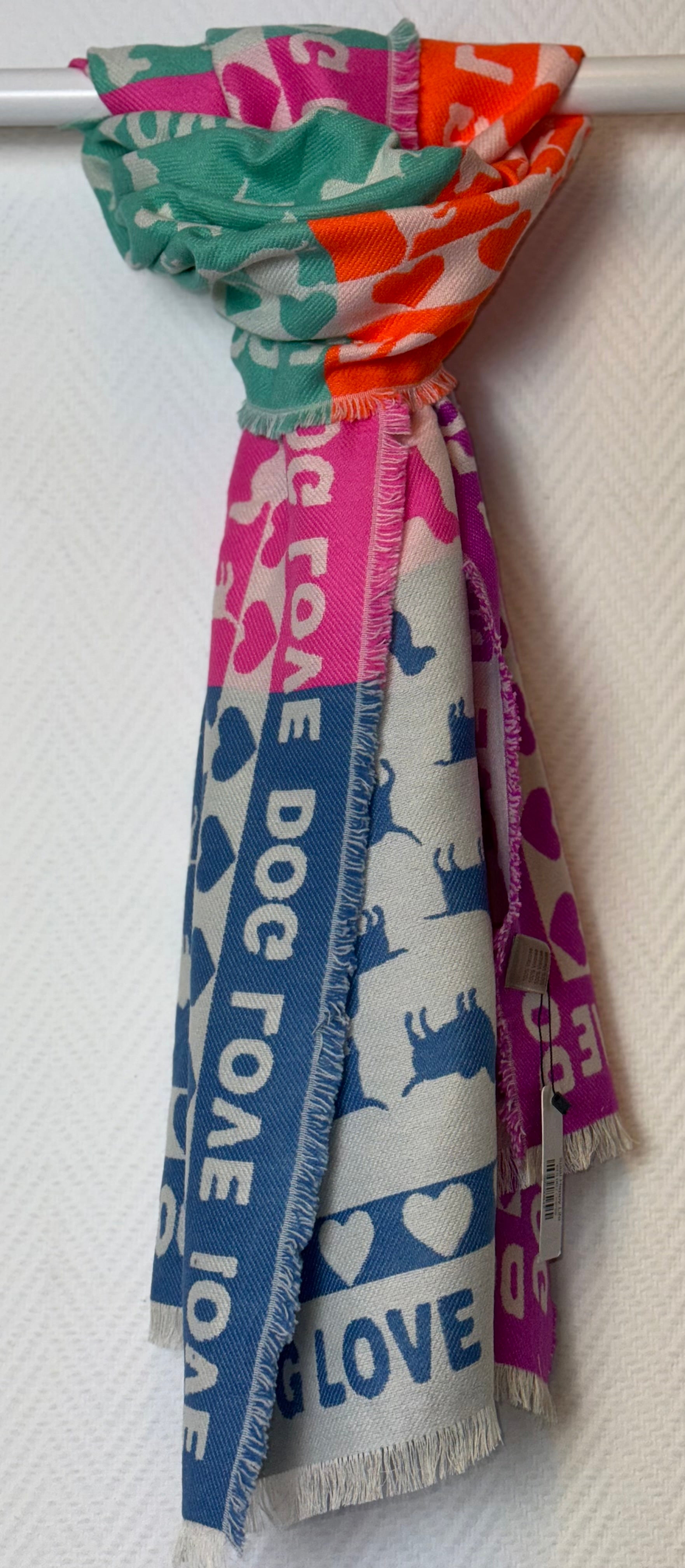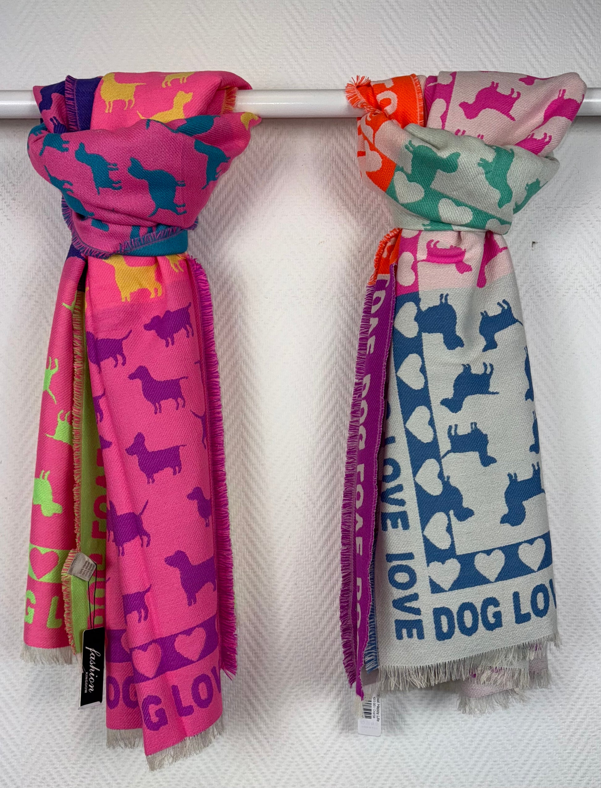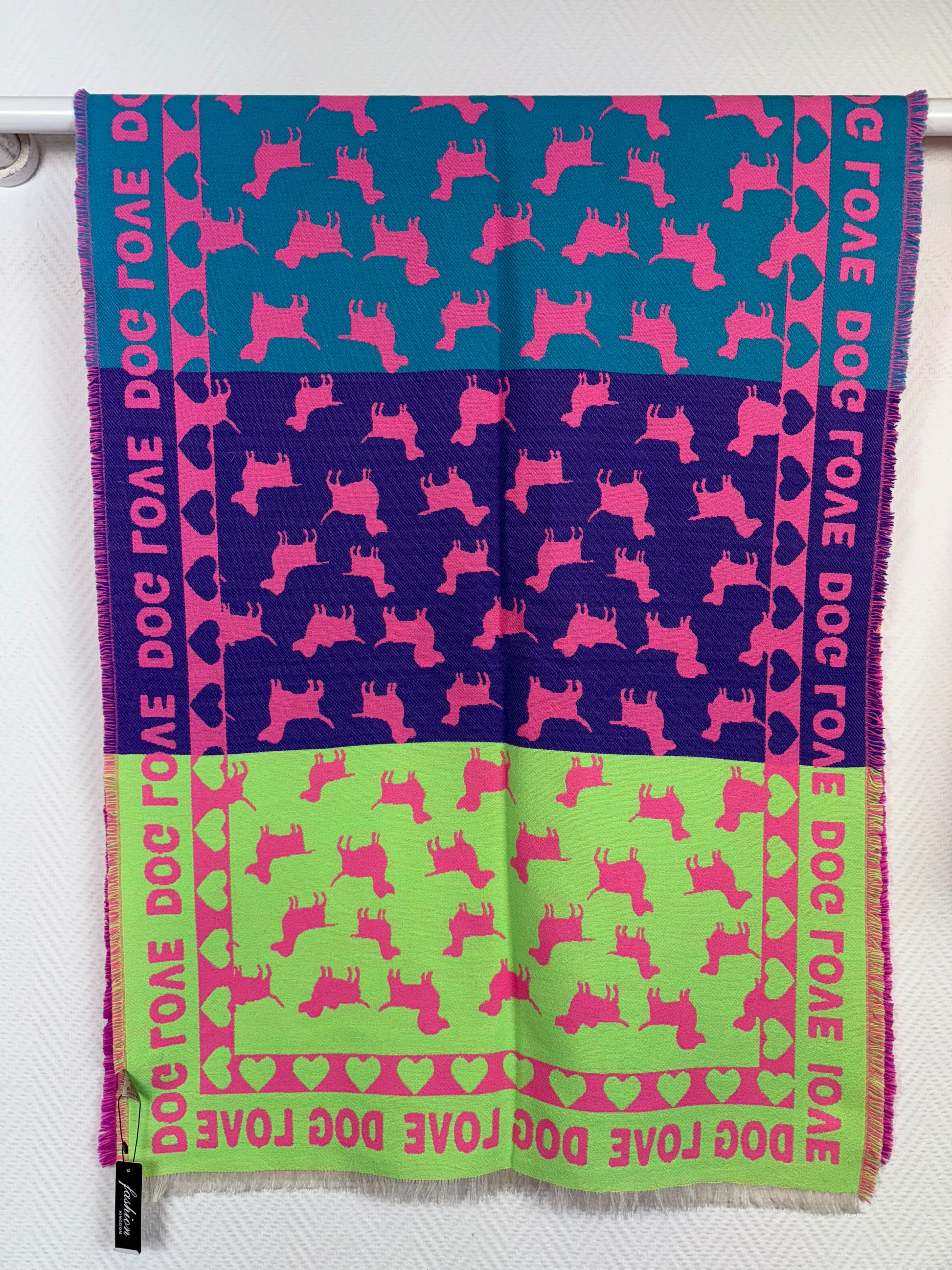 Wat een te gekke kleuren combinatie hebben deze mooie zachte viscose sjaals met all over print van hondjes