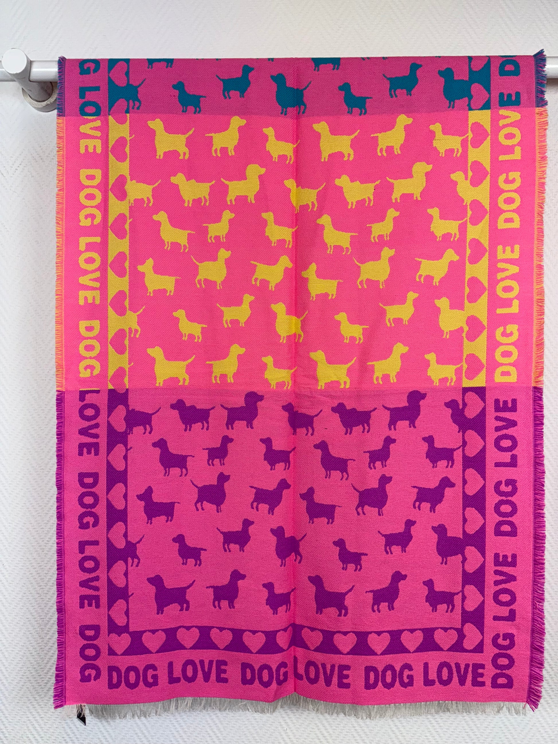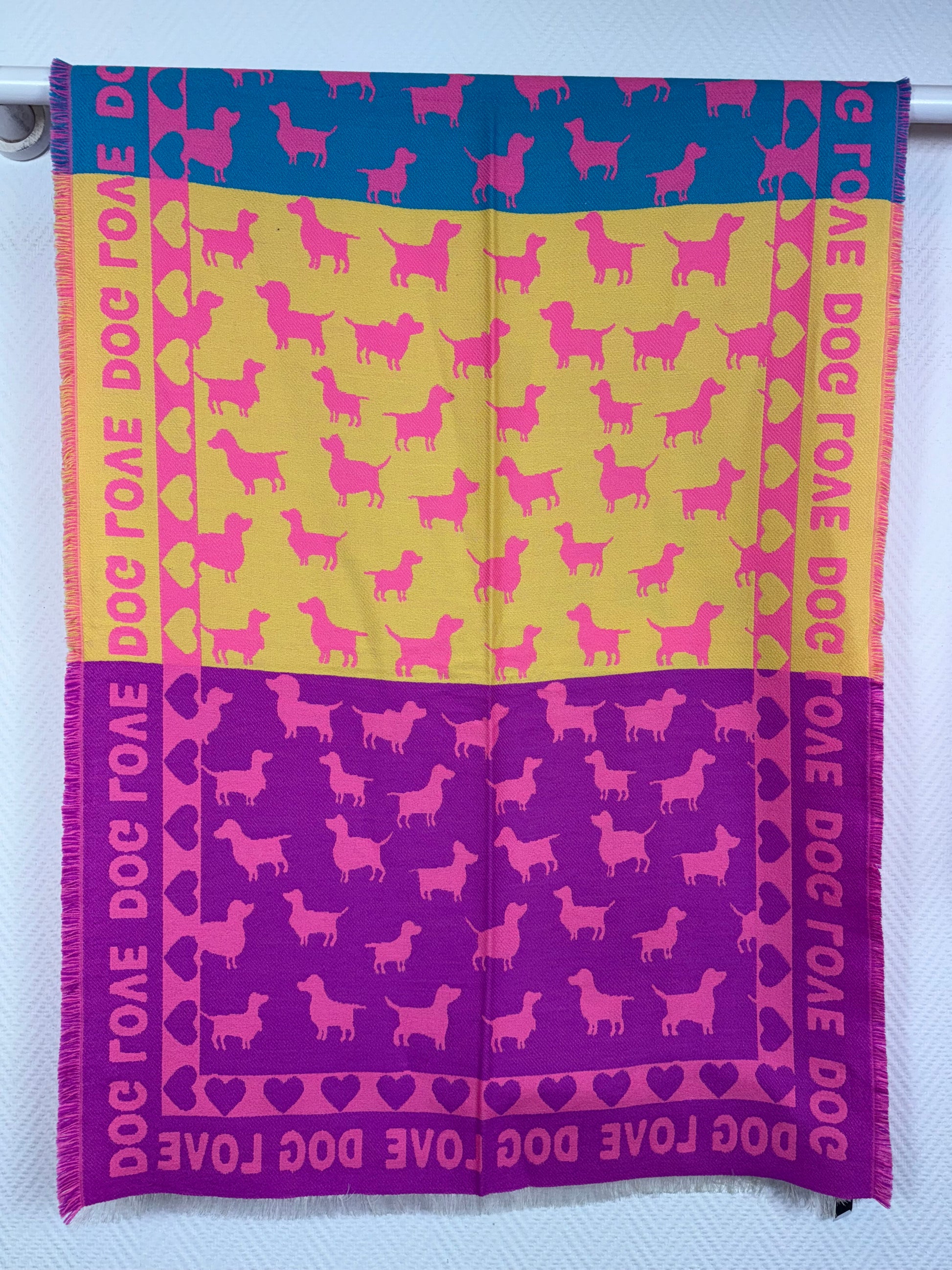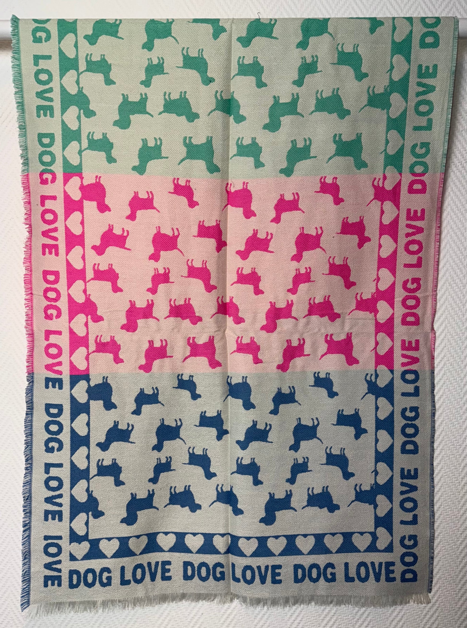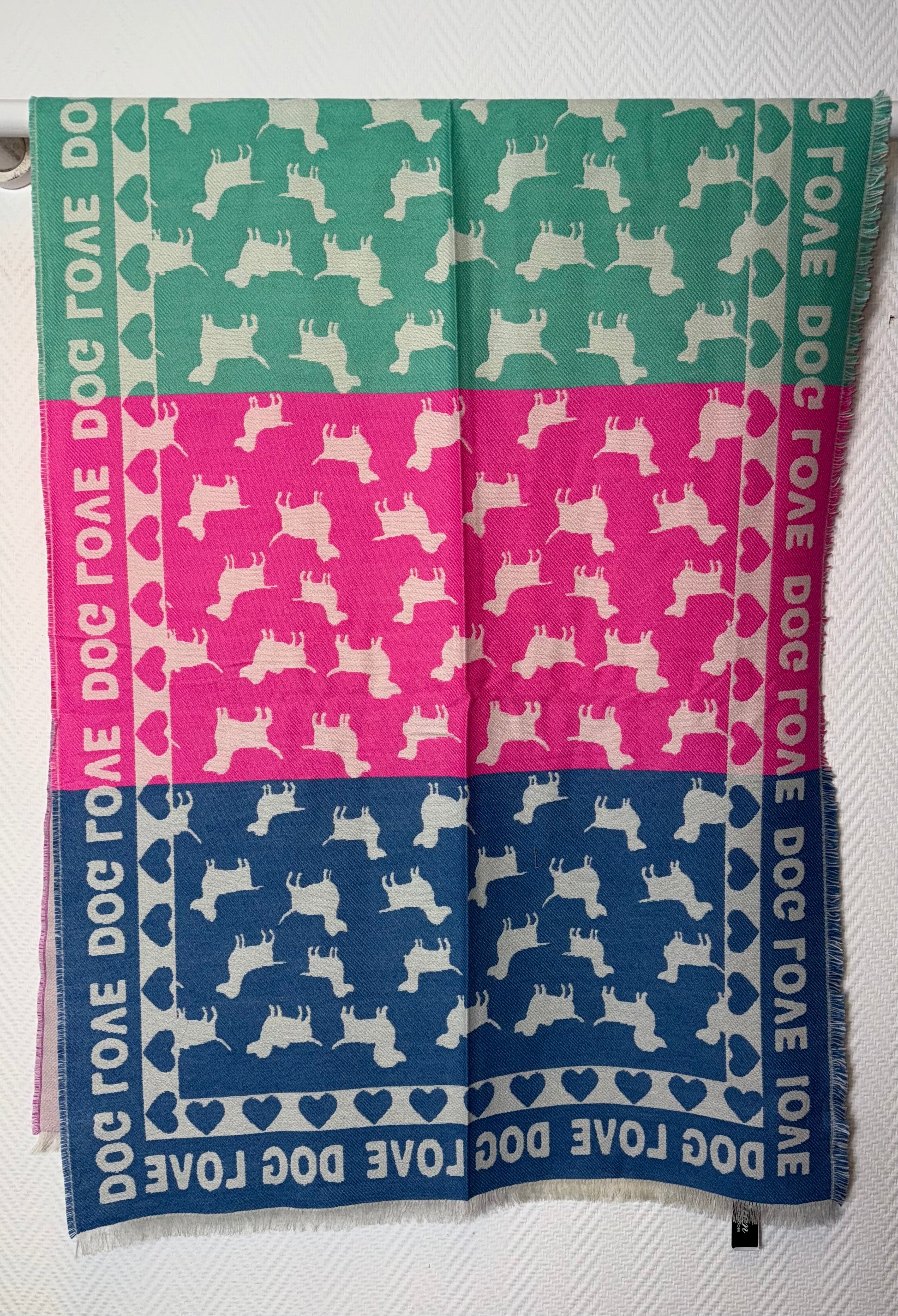 Wat een te gekke kleuren combinatie hebben deze mooie zachte viscose sjaals met all over print van hondjes