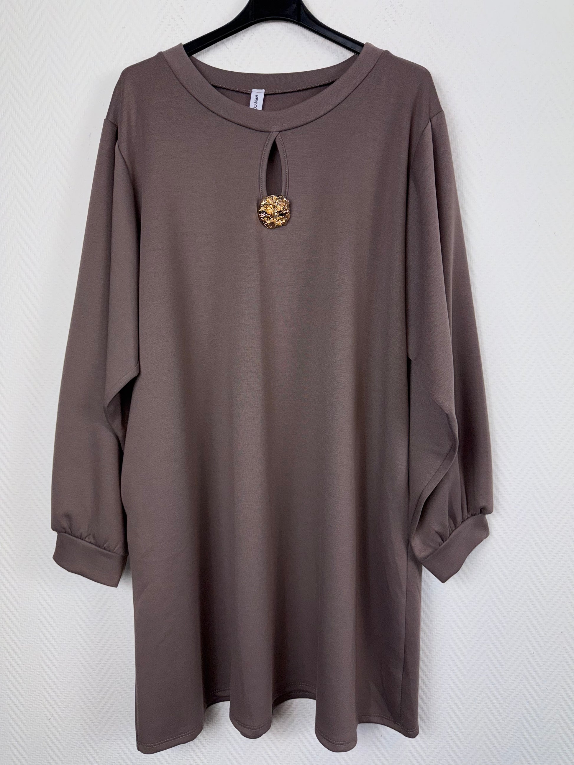 Super deze comfy sweat dress met leuke details aan de voorkant en de broche die je natuurlijk overal kunt plaatsen waar je wilt en er indien gewenst ook af kunt halen.