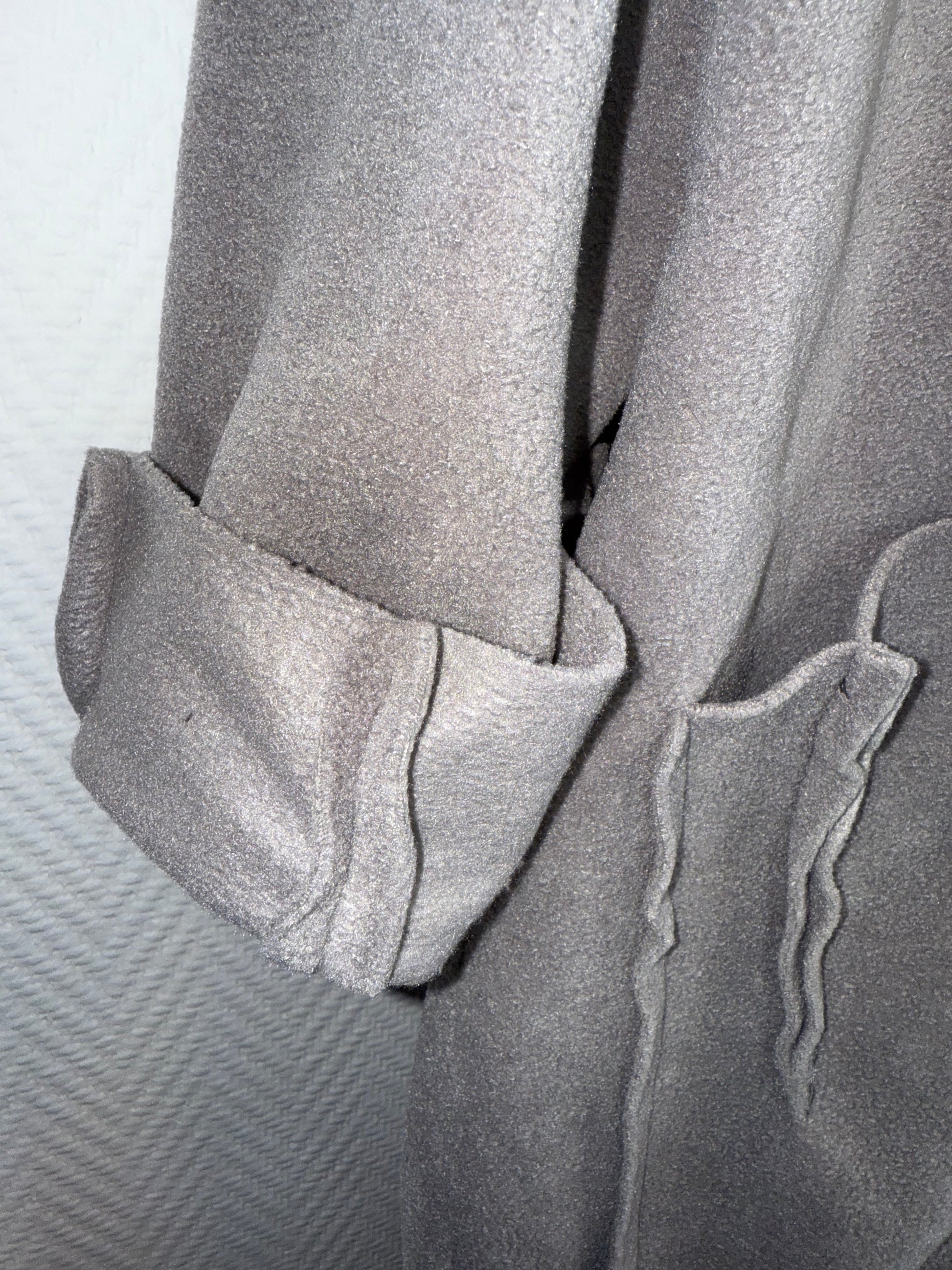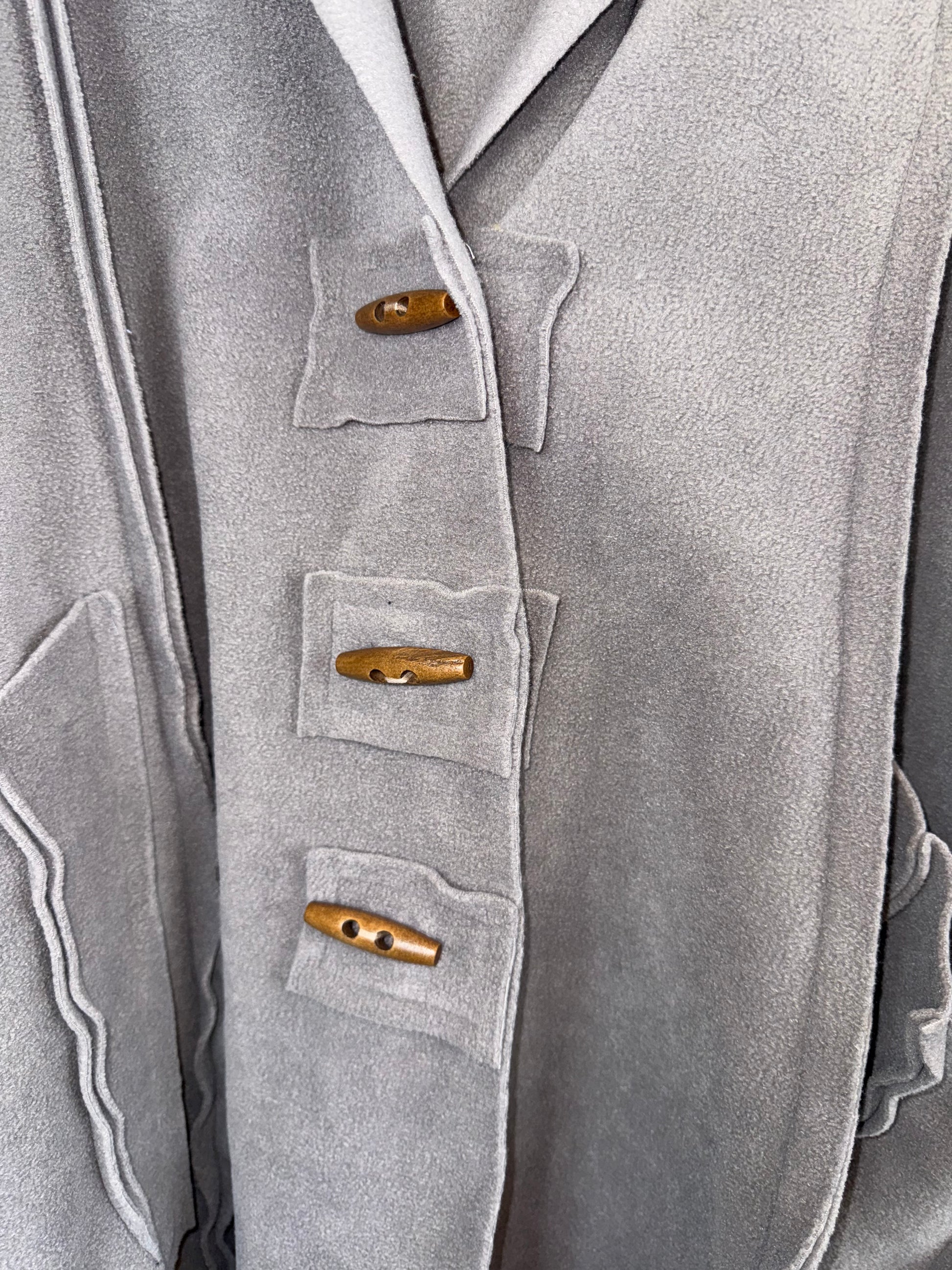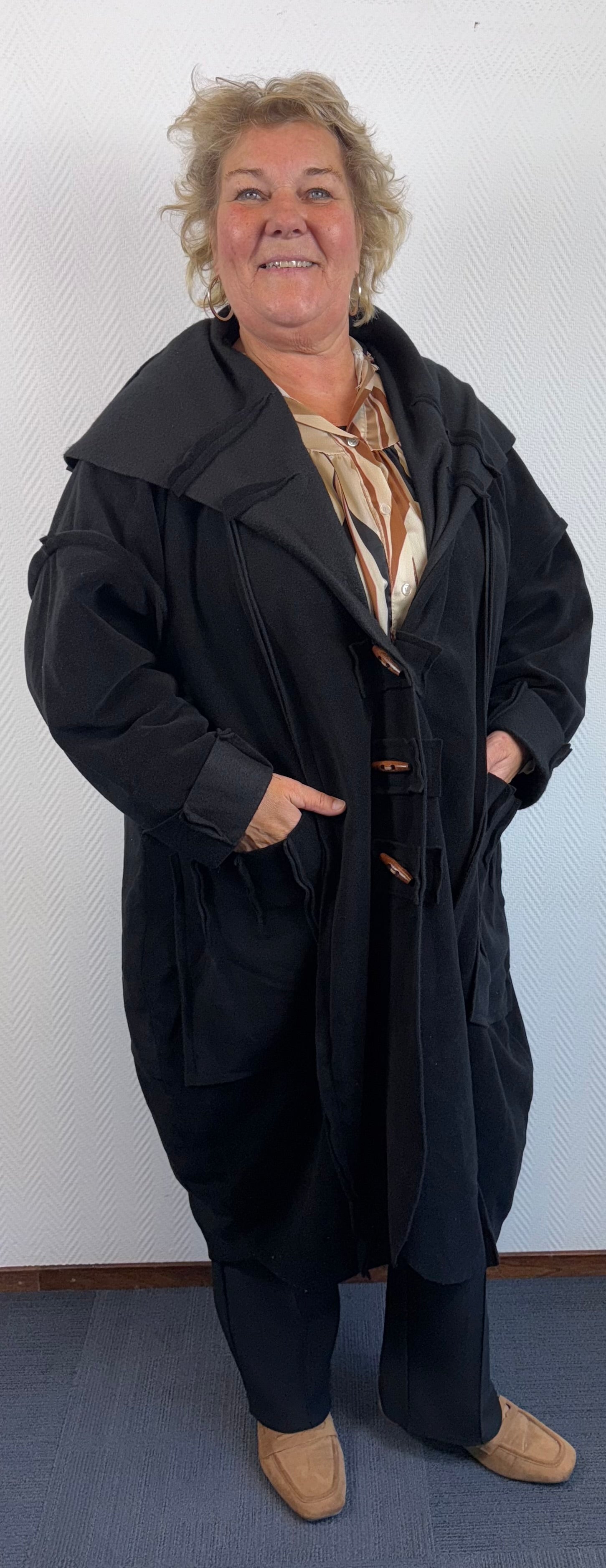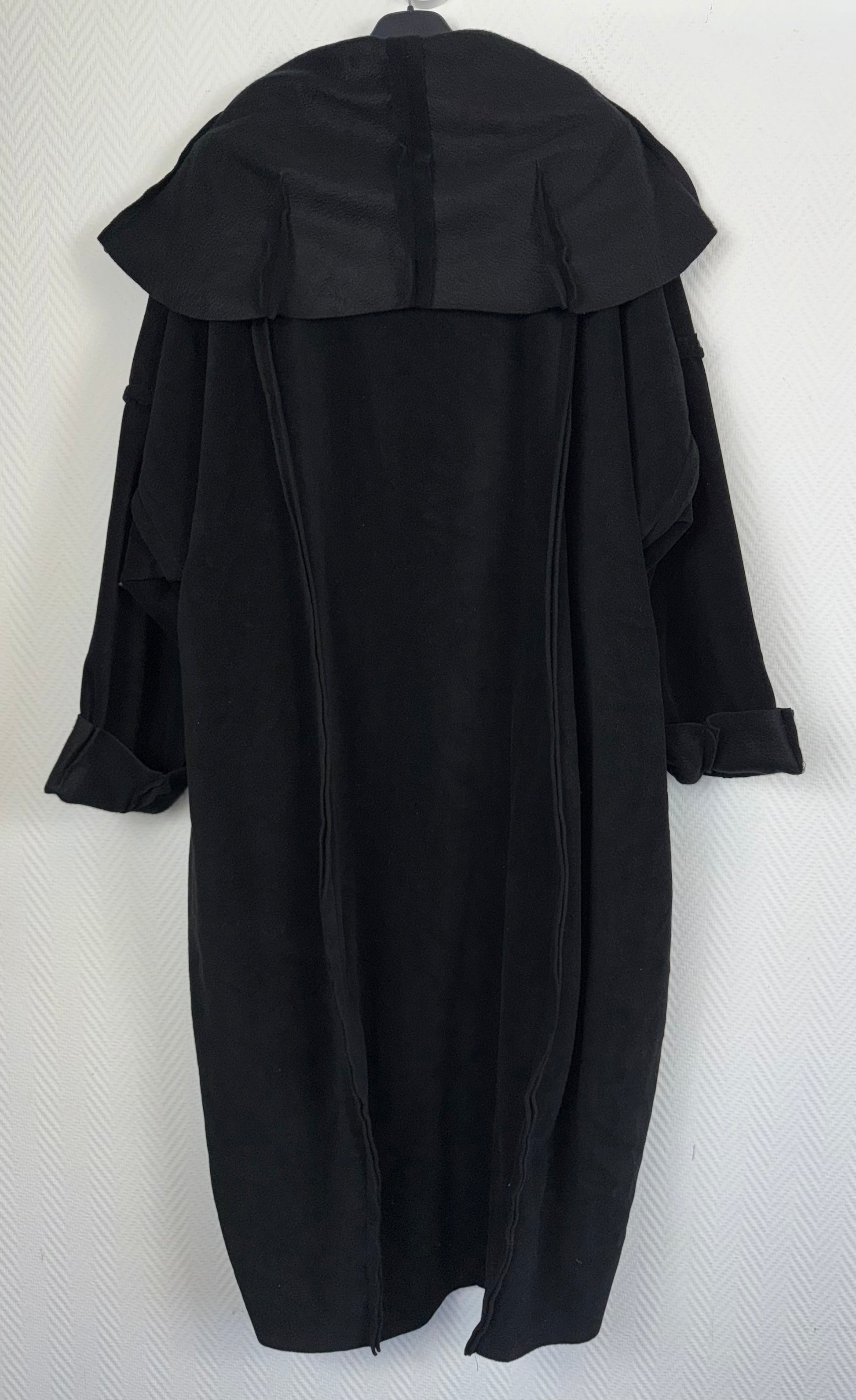 De capuchon die als een kraag op de rug ligt, de zakken, de houtje touwtje sluiting en ga zo maar door