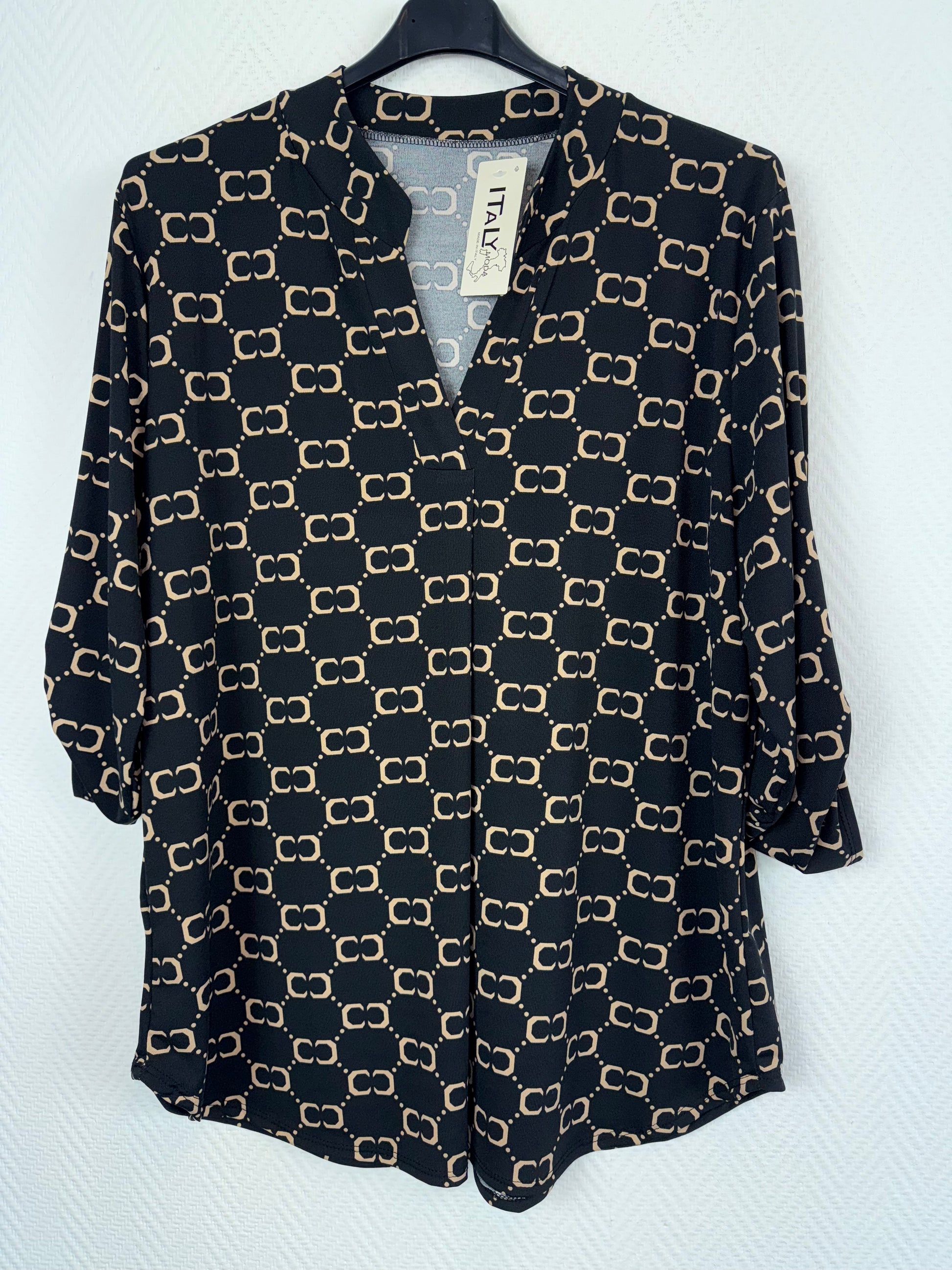 Basis shirts met V hals en ophaal mouwen in dat fijne travelstof in mooie print