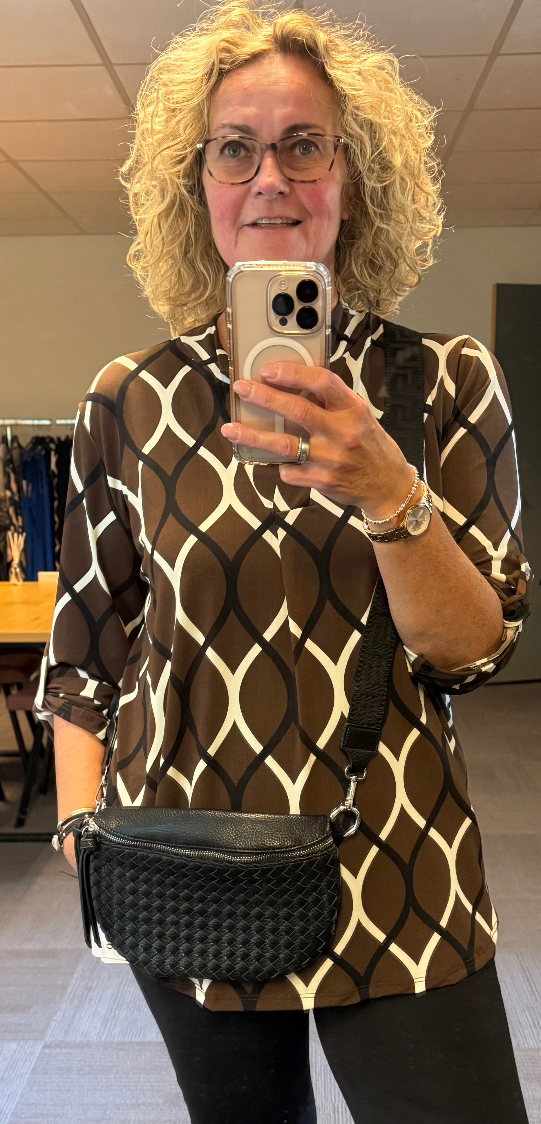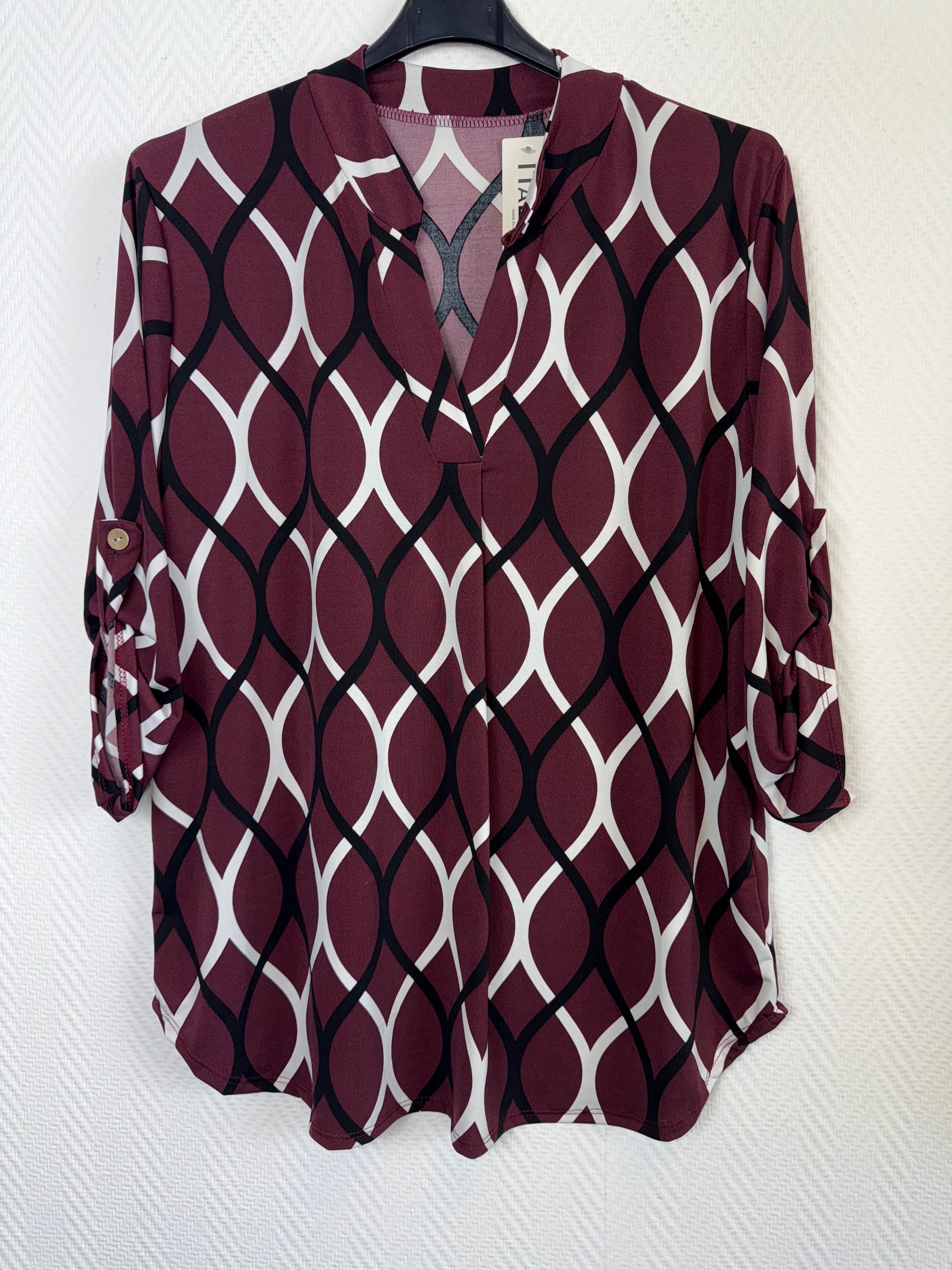 Basis shirts met V hals en ophaal mouwen in dat fijne travelstof in mooie print