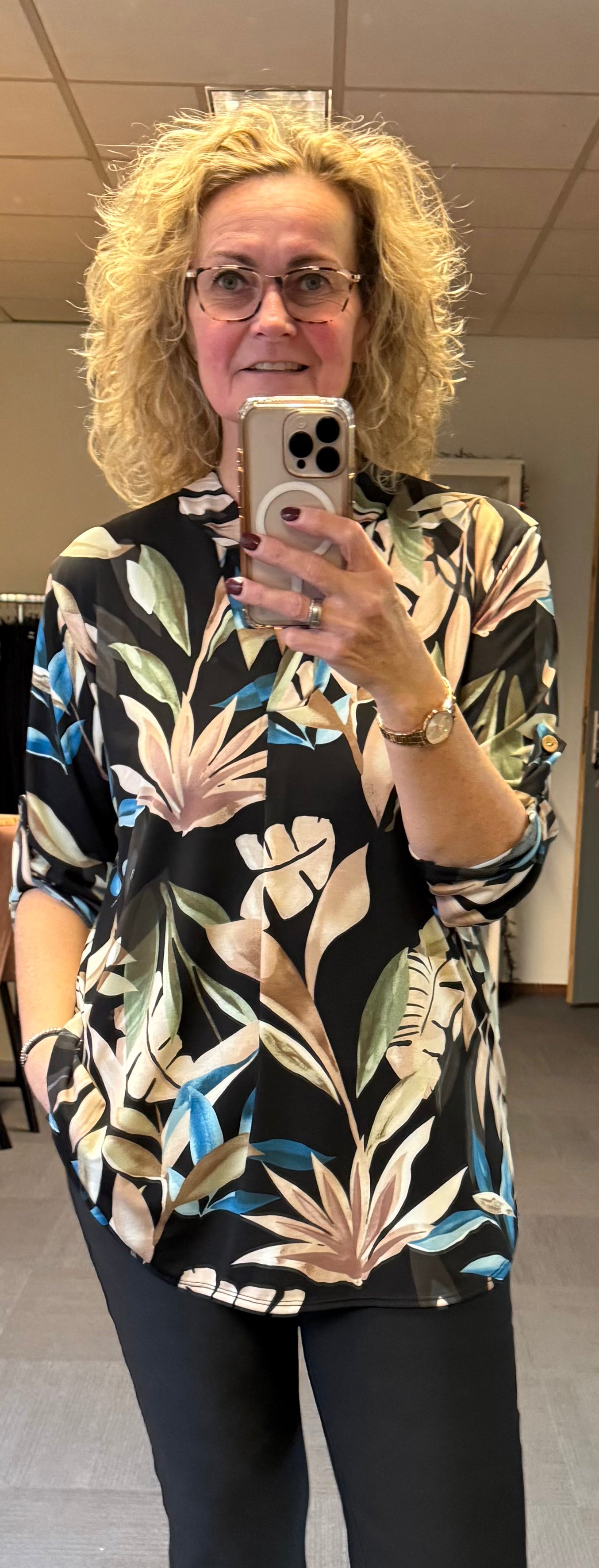 Basis shirts met V hals en ophaal mouwen in dat fijne travelstof in mooie print