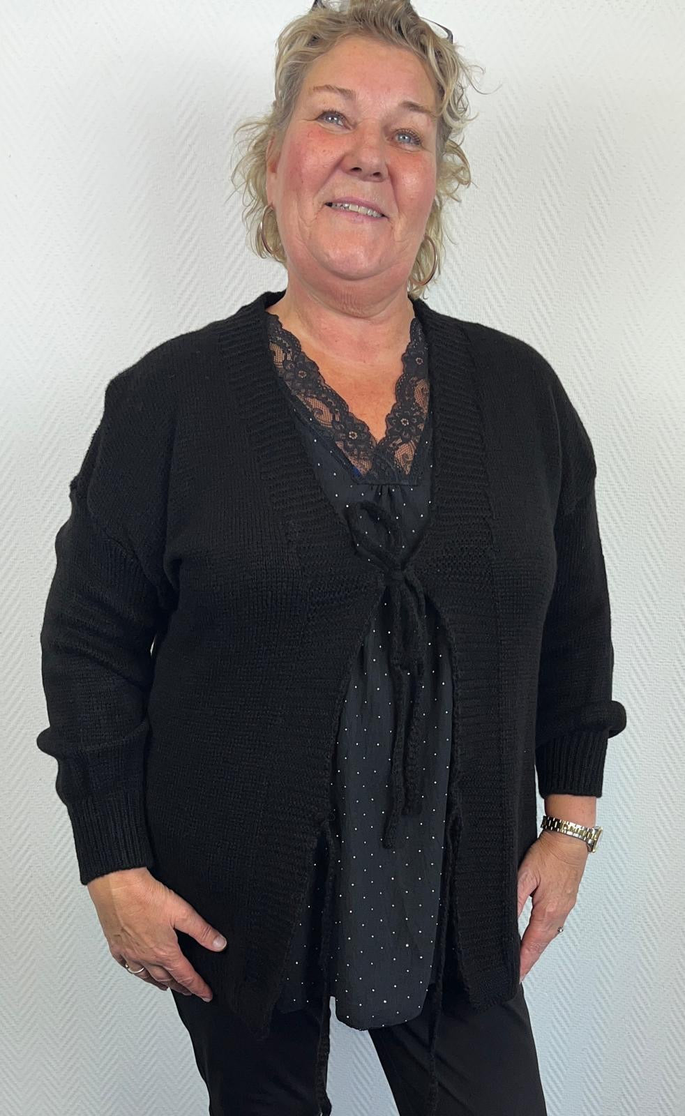 Lekker basis vestje in zwart die sluit door middel van de touwtjes te strikken.